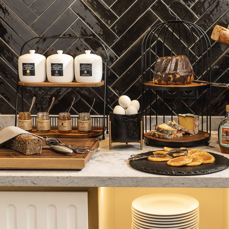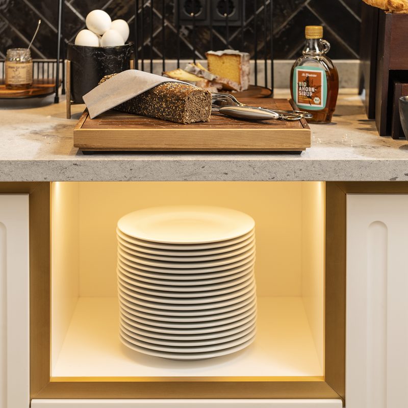 In our breakfast restaurant on the ground floor, our guests can help themselves to the sumptuous Continental Breakfast Buffet in an elegant ambience, which is mainly composed of regional products.